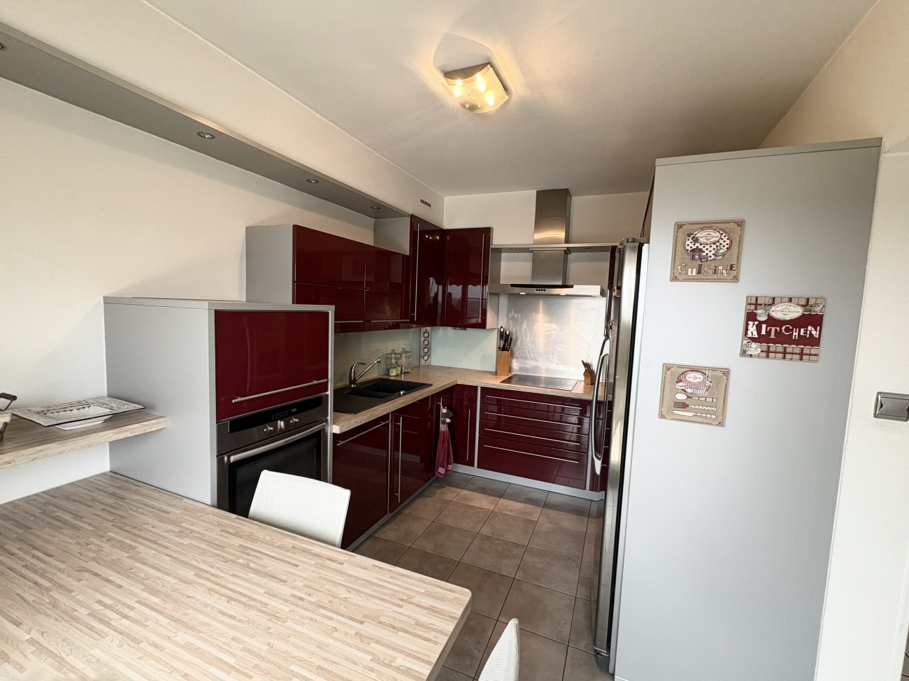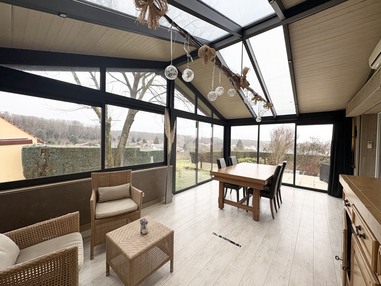 - Au RDC : une entrée avec placard, un dégagement, une cuisine équipée et meublée (lave-vaisselle, plaque, four, hotte, réfrigérateur, micro-ondes, meubles hauts et bas) donnant accès à la terrasse, ouverte sur grande pièce à vivre, une véranda de 21.60 m², un WC séparé et un accès garage.