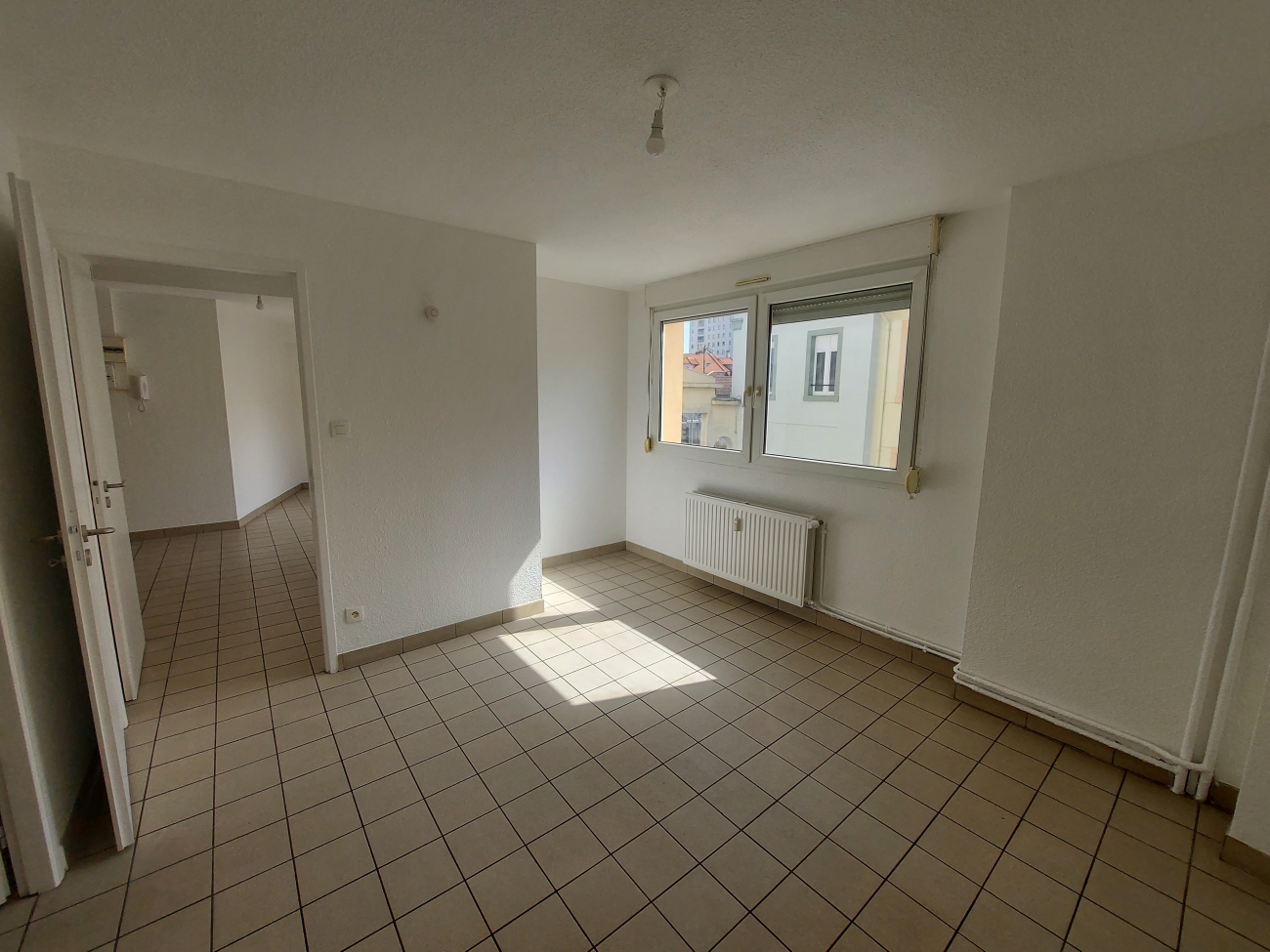 EPINAL T2 de 39m2 au 1er étage sans ascenseur comprenant une pièce principale avec cuisine équipée (plaque de cuisson, réfrigérateur, évier, meubles, hotte) une chambre spacieuse et lumineuse, une salle de bains avec baignoire. UN WC séparé