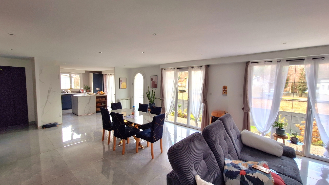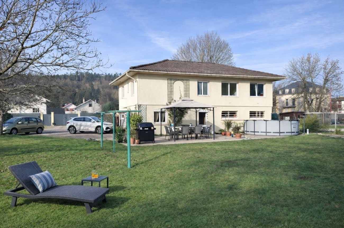 Située sur la charmante commune de Docelles, belles prestations pour cette lumineuse maison de 1974 entièrement rénovée avec goût d'une superficie de 135m² environ, entretenue & édifiée sur un terrain entièrement clos de 1348m² environ avec ruisseau en fond de parcelle offrant :